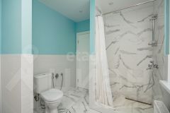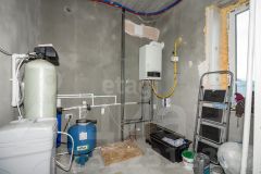 На первом этаже находится гостевой санузел. В нем предусмотрено окно. Оборудован электрический теплый пол. Через санузел попадаем в котельную. Установлен настенный газовый двухконтурный котел. От него подается и отопление и горячая вода.