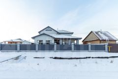 Отделка фасада дома - комбинированная - керамический кирпич цвета Графит и бесшовным металлосайдинг серого цвета. В качестве утеплителя использовали - минеральную вату Кнауф. Крыша дома из металлочерепицы Европа. Окна рехау с пятикамерным профилем, тройным остеклением и наружной ламинацией. При строительстве сразу предусмотрели все магистрали. Дом круглосуточно находится под видеонаблюдением. По углам дома установлены видеокамеры.