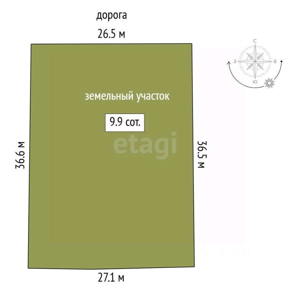 Участок имеет правильную прямоугольную форму, идеальный вариант для воплощения любых архитектурных решений и строительных проектов.