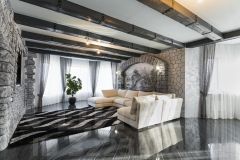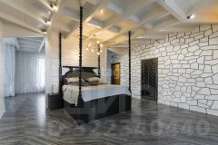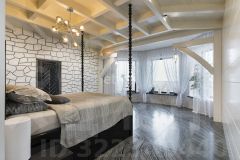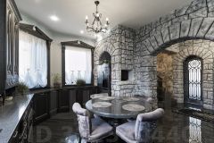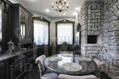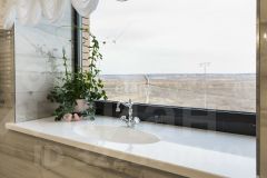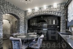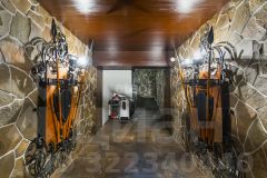 Ремонт в доме был выполнен по эксклюзивному дизайн-проекту. Традиционная и удобная планировка дома позволяет гармонично зонировать пространство. На 1 этаже располагается огромная гостиная, просторная кухня, один из с/узлов. На 2 и мансардном этажах располагаются спальни, кабинет, свои с/узлы. Лестницы играют важную роль в создании уникального дизайна помещения. Поднимаясь или спускаясь в цоколь, обратите внимание на поручни, они выполнены в индивидуальной неповторимой металлической ковке. По всему периметру лестницы установлены лампы с датчиками движения, что обеспечивает удобство передвижения в темное время суток. Поднявшись на мансардный этаж мы попадаем в одну большую комнату, оформленной резкой из дерева и барельефом викингов и морей на потолке. Полукруглое окно оформлено деревянным кораблем-драккарой из которого можно наблюдать шикарный пейзаж во все времена года.
