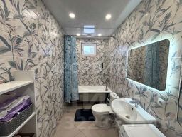 Две спальни и кухня-гостиная, из которой есть выход на террасу. В доме сделан свежий ремонт. Установлена качественная система водоочистки. Мебель и техника остаются по договоренности. На полу керамогранит, натяжные потолки.