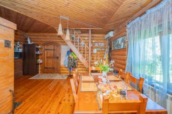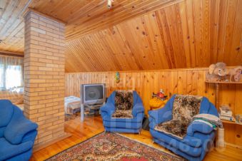 Продается загородный двухэтажный дом для большой семьи в районе озера Андреевское. Год постройки дома 2010 год, реновация была в 2019 году. Общая площадь 190 кв.м. на территории размером 14,3 сот земли. Дом с картинки с самым необычным дизайном для круглогодичного проживания, построен из высококлассных строительных материалов. Внутри жилого дома всюду изысканный уют и продуманная рациональность, сделан ремонт из качественных материалов. На первом этаже большая комната ~ 70 кв..м, небольшая комната ~8 кв.м, кухня 8 кв.м, коридор 12 кв.м, туалет 8 кв.м. Второй этаж свободная планировка, можно поделить на две комнаты. На территории двора присутствуют и другие постройки для приема гостей и релакса: Баня размером 6м-6м на берегу пруда, капитальная беседка 6м-5м с монгальной зоной, подсобные помещения 6м-5м, есть собственный пруд. Земля разработана, посажены взрослые березы, кустарники и другие декоративные деревья. Летом во дворе царство цветов и зеленых лужаек, а зимой забава для детей - собственный каток в небольшом пруду. Всего несколько минут до большого озера Андреевское.