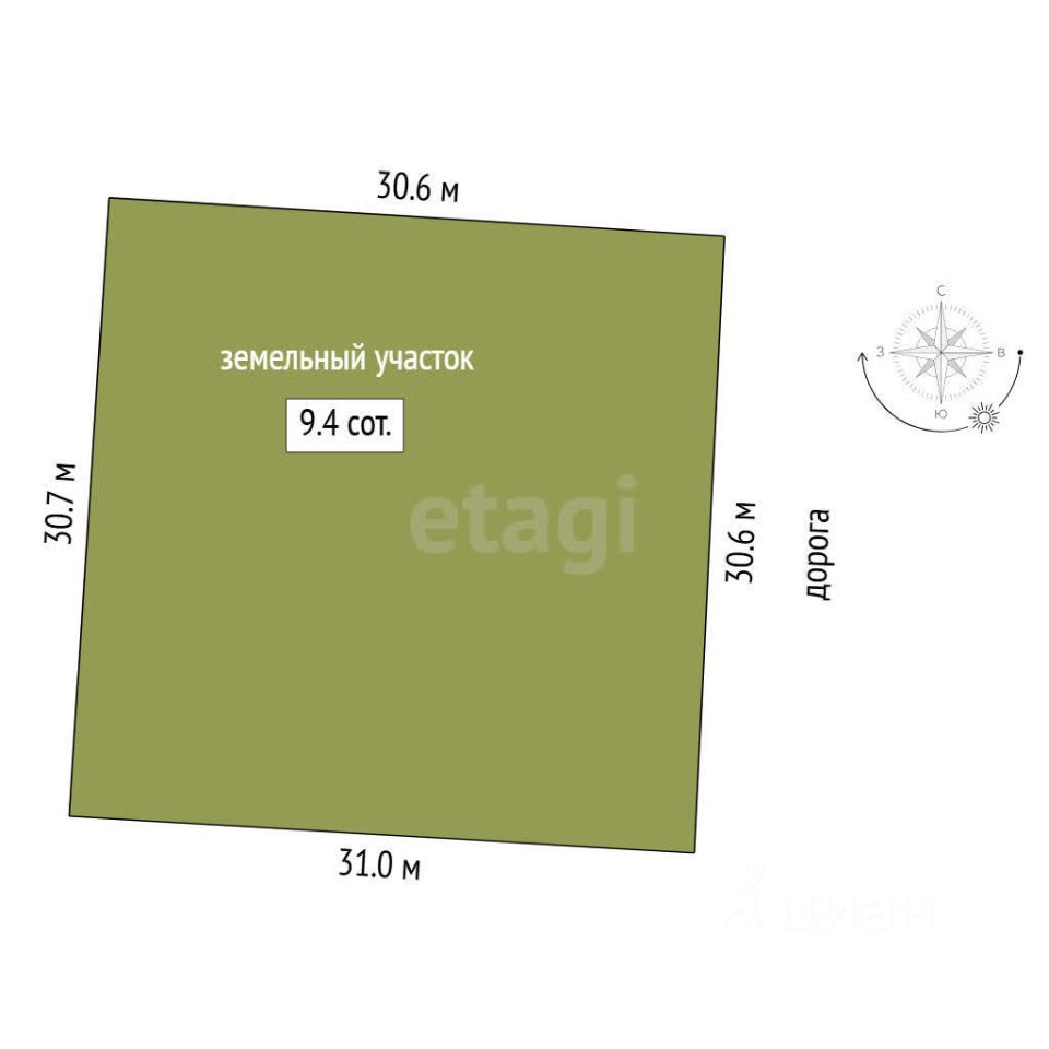Участок правильной формы, 9,38 соток, вид разрешенного использования - ведение садоводства.