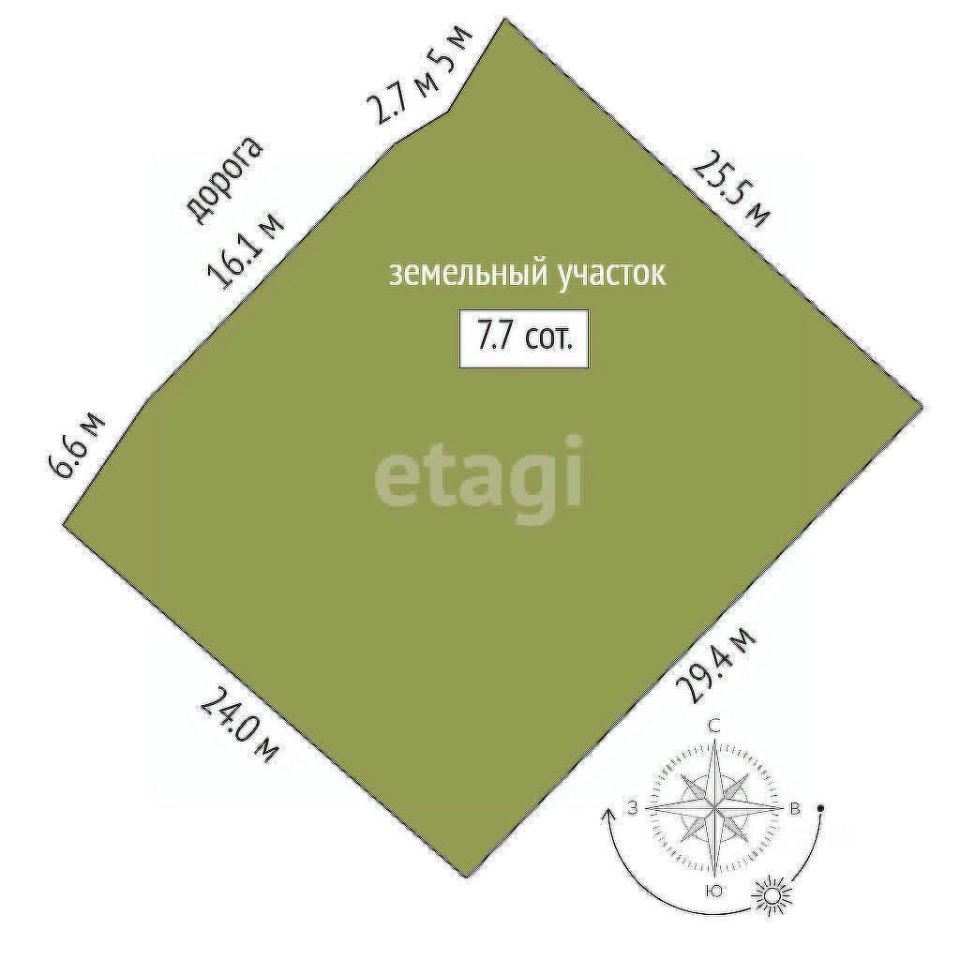 Площадь 7,7 соток: Отличный вариант для строительства загородного дома или дачи.