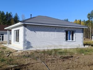 Продается дом в с. Тюнево. Земельный участок 7.6 сот., правильной формы, не разработан. На участке одноэтажный дом 90 м2: фундамент- монолитная плита, утеплена по периметру, сделана отмостка; стены керамзитоблок+утеплитель+облицовочный кирпич; кровля-ондулин. Коммуникации: отопление -водяной теплый пол от электрического котла; электричество разведено по дому; вода заведена в дом (скважина); септик (6 колец). Улучшенная черновая отделка: стяжка пола; стены оштукатурены и отшпаклеваны; установлен котел и запущено отопление. От ИП, подходит под семейную ипотеку!