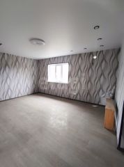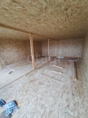 4. Ремонт: Чистовая отделка выполнена только на первом этаже. На полу линолеум; потолок натяжной, стены декоративные обои. В санузле установлена раковина и унитаз. Межкомнатные двери. Розетки и выключатели а так же потолочные светильники. Второй этаж обшит осб.