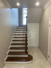 Лестница сделана из натурального массива (береза), под лестницей организовано подсобное помещение.
