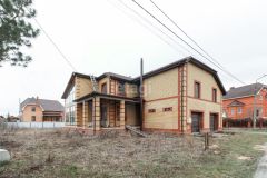 Продается коттедж в одном из самых привлекательных районов города Тюмени: проезд Воронинские горки, район пос. Метелево/Княжево. Дом расположен в 20 минут до центра города на машине и на aвтобусе. С одной стороны, дом находится в черте города, c другой стороны — на лоне природы: несколько озер, река, места для купания, в 20-ти минутах от горячих источников. Дом и земельный участок в собственности. Дом построен из блоков, утеплен пенополистиролом, обложен кирпичом. Внешняя отделка из желтого кирпича, пластиковые темно-коричневые окна и коричневая крыша смотрятся очень стильно. Общая площадь 488,9 м.кв, жилая площадь 226 м.кв, площадь цоколя 170 м.кв (высота потолков 3,2 метра в цоколе, 1-ый и 2-ой этаж). Дом отапливается газом, котельная находится в цокольном этаже, оборудована двумя газовыми котлами (один резервный). Междуэтажные перекрытия - плиты. Внутренняя отделка дома улучшенная черновая: стены выровнены под маяк, оштукатурены, ровная стяжка на полу первого и второго этажей, три санузла выложены плиткой. Полностью сделана разводка электричества, водоснабжения и канализации, в комнатах разводка под кондиционеры. Водоснабжение централизованное (холодная вода, нагрев - бойлер), канализация - септик 10 куб.м. Встроенный гараж на 2 машины с 2-мя автоматическими воротами.