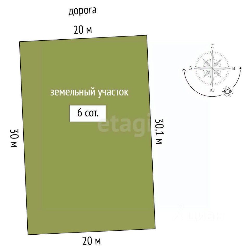 Участок 6 соток, правильной формы. Отличное место для строительства загородного дома, бани, уютной беседки, мангальной зоны и т.п.