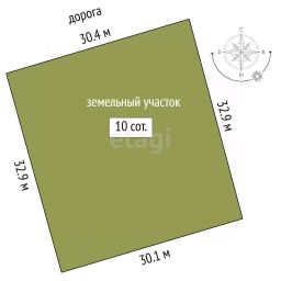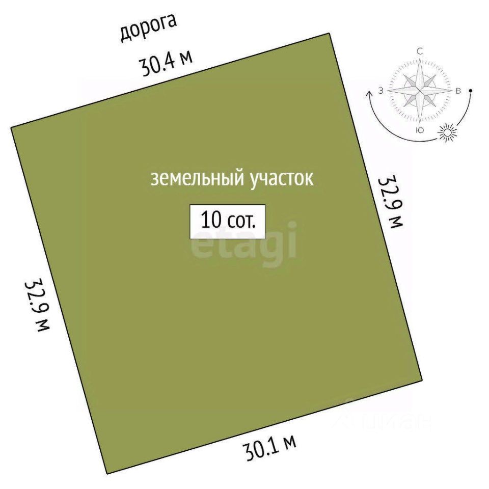 Земельный участок площадью 10 соток. Чистый, ровный участок, прямоугольной формы.