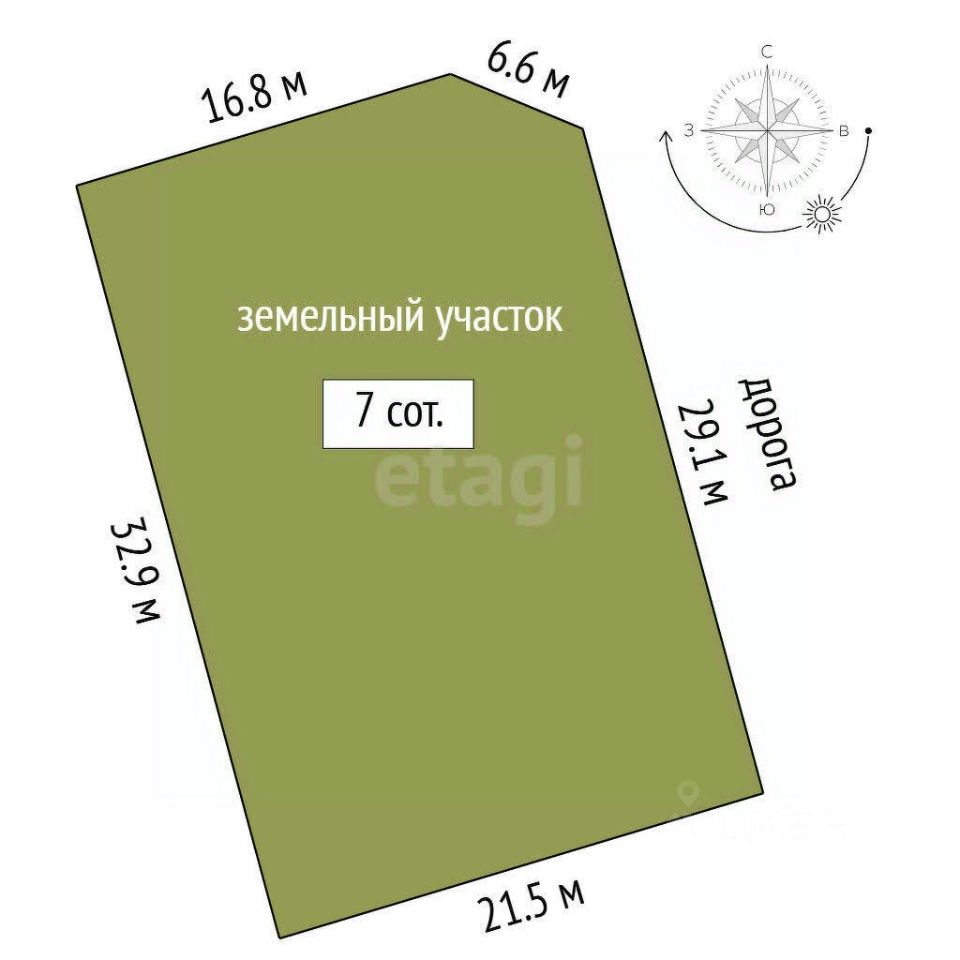 Земельный участок площадью 7 соток. Чистый, ровный участок, прямоугольной формы.