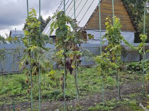 - Плодоносящие насаждения: смородина, виноград, крыжовник, малина, жимолость — готовый урожай каждый сезон