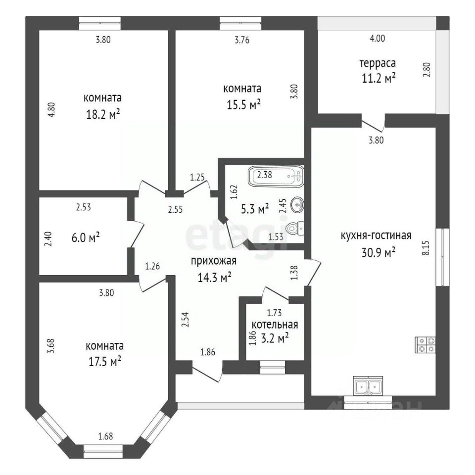 * котельная площадью 3,2 кв. м;