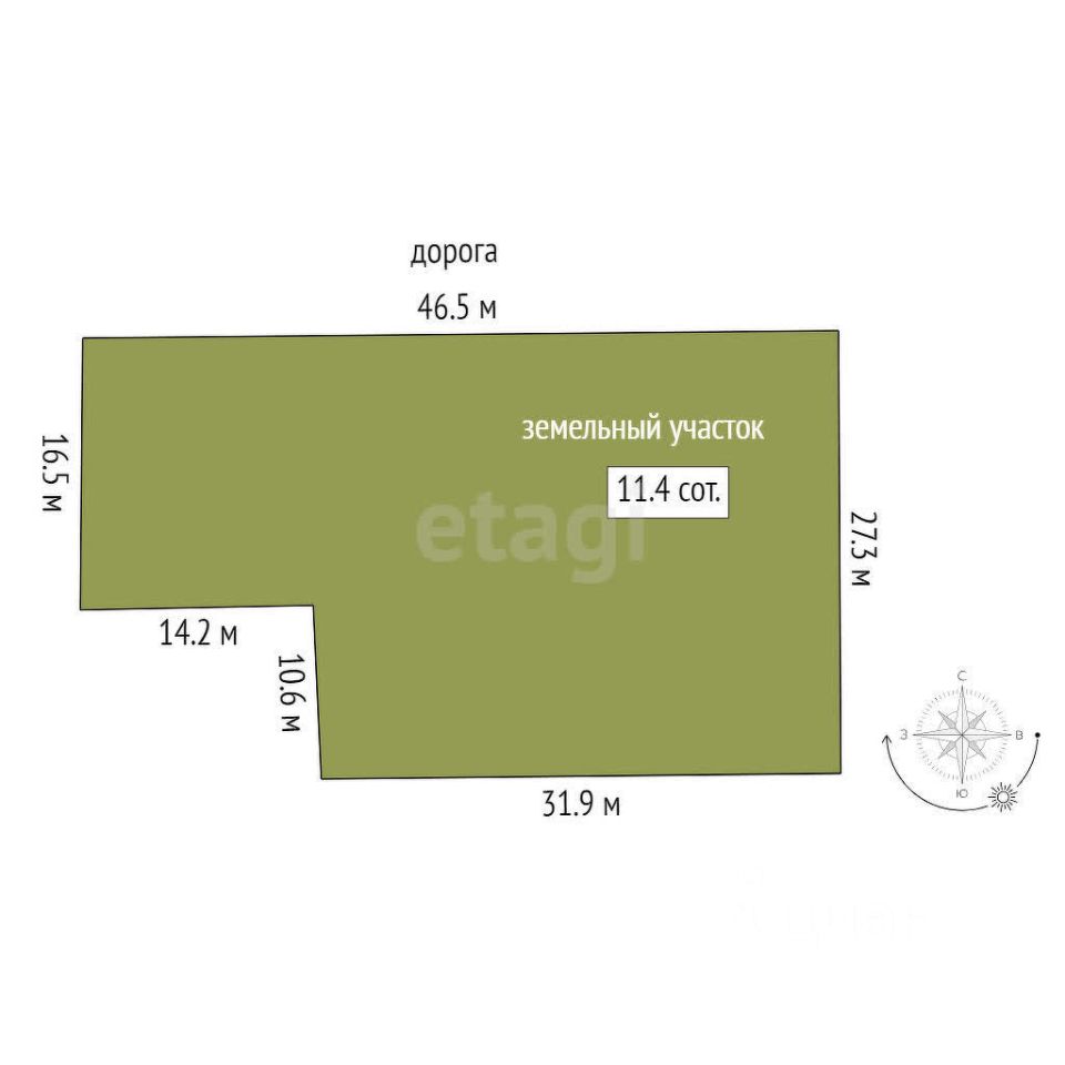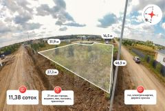 Участок 11,38 соток, по фасадной стороне - длина 46 метров, в глубину - 27 метров.