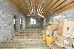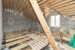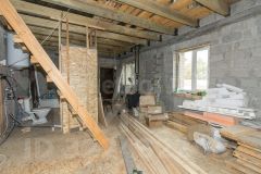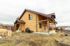 Возведен двухэтажный дом 213.8 м2: фундамент- ленточный; стены керамзитоблок (300 мм) +утеплитель (пенополистирол 100 мм)+облицовочный кирпич; кровля-гибкая черепица, утеплена минватой 250 мм, установлено мансардное окно. Коммуникации: газ на участке; электричество разведено по дому; подъезд к дому -асфальт. В доме черновая отделка, заведена вода, канализация проведена и установлена сантехника. Участок и дом в собственности, возможно оформление в ипотеку.