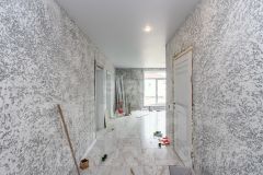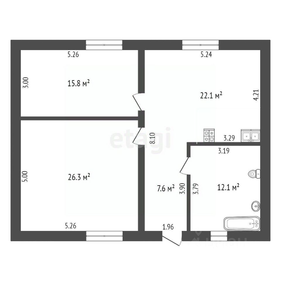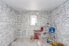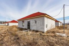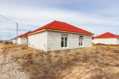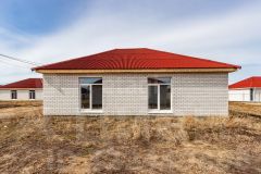 Фундамент: ленточный с залитой монолитной плитой. Наружные стены: блок поревит, обложенный полуторным белым силикатным кирпичом. Крыша: четырехскатная, утепленная, перекрытия деревянные, покрытая ондулином. Внутренняя отделка: предчистовая - на полу стяжка по маякам, стены воровнены, окна с тройным стеклопакетом, железная входная дверь. Водоснабжение: автономное, своя скважина, установлен насос, фильтры, расширительный мембранный бачок, манометр, реле давления. Водоотведение: автономное, индивидуальный септик из бетонных колец в количестве 3 штук. Отопление: индивидуальный электрокотел, теплый водяной пол, расширительный бачок, коллектор для теплого пола, установлены 2 циркуляционных насоса. Электричество: электропроводка по всему дому. Планировка: кухня-гостиная 22,1 кв.м., две изолированные комнаты 15,8 и 26,3 кв.м., котельная с санузлом площадью 12,1 кв.м.