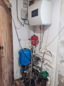 Вода - скважина, заведена в дом, отопление - электрический котел, септик - 6 кубов, Газовый стояк возле дома. Лицевая сторона забора из проф. листа, по периметру деревянный забор + сетка рабица. Небольшая банька, земля разработана, 2 теплицы (насаждения: яблони, ягоды, плодоносящие кусты).