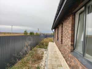 - Ограждение придомовой территории фасадным забором в едином стиле с домом со столбиками из кирпича и штакетником.