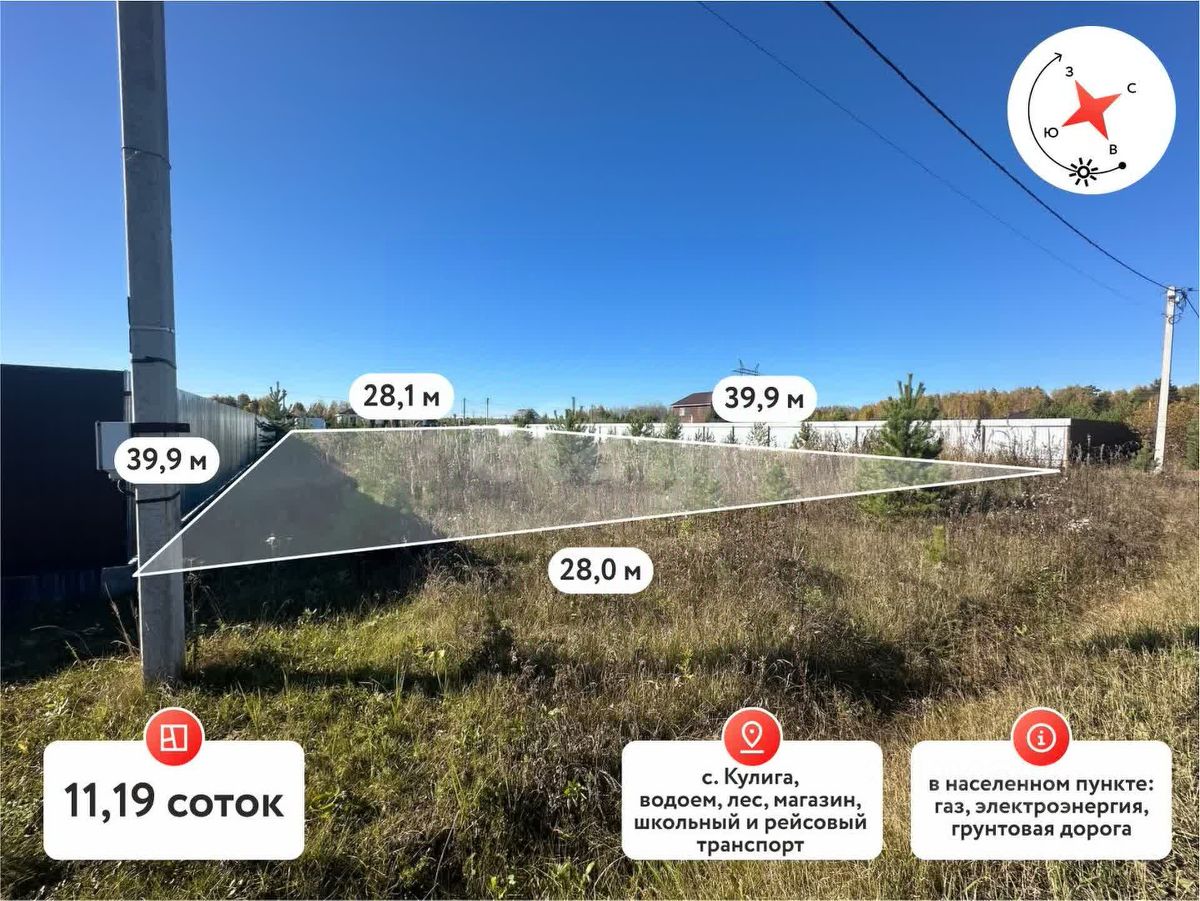 Участок площадью 11,19 соток расположен в перспективном поселке Кулига-2 на центральной улице с развитой инфраструктурой. Высокое положение тракта в области обеспечивает устойчивый рельеф и хороший дренаж, что является ключевым преимуществом для строительства.