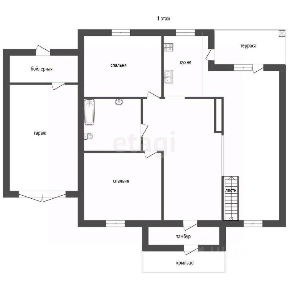 Планировка продумана для удобного проживания семьи. На первом этаже расположены просторная кухня-гостиная, две спальни, ванная комната, кладовая и теплый гараж, совмещенный с котельной. Второй этаж это зона родителей, спальня с санузлом. Дополнительное преимущество — система умного дома с управлением освещением и розетками через смартфон. На участке есть баня зоной отдыха .