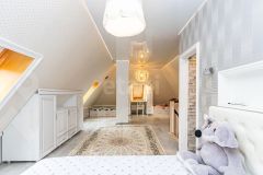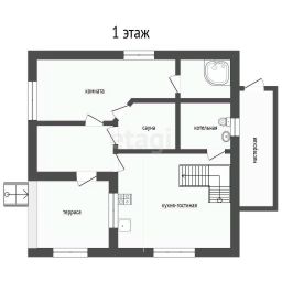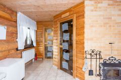 2 этажа, площадь 85м2. Планировочным решением предусмотрено: на первом этаже просторная кухня гостиная, ванная комната с душем и ванной, сан.узел+ котельная, баня, комната отдыха; на втором этаже большое помещение, расзонированое на взрослую спальню и детскую комнату, гардеробная.