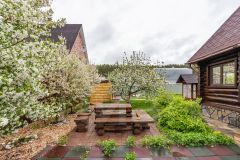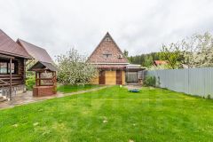 Участок правильной формы, большой, ухоженный, огорожен красивым забором с автоматическими воротами для заезда. Из насаждений плодоносят яблоня, вишня, смородина, жимолость. Есть теплица. На участке оборудована зона отдыха для барбекю, парковочное место под авто, мастерская, дровяник, колодец.