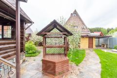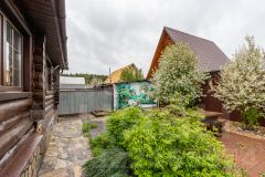 Дворовая территория выложена плиткой, дорожки из натурального камня, сделана водосточная система, красивый газон. Установлена сигнализация.