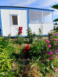 На участке установлен новый модульный домик (12 кв. м) с просторной террасой (12 кв.м) в котором можно отдохнуть после трудового дня.