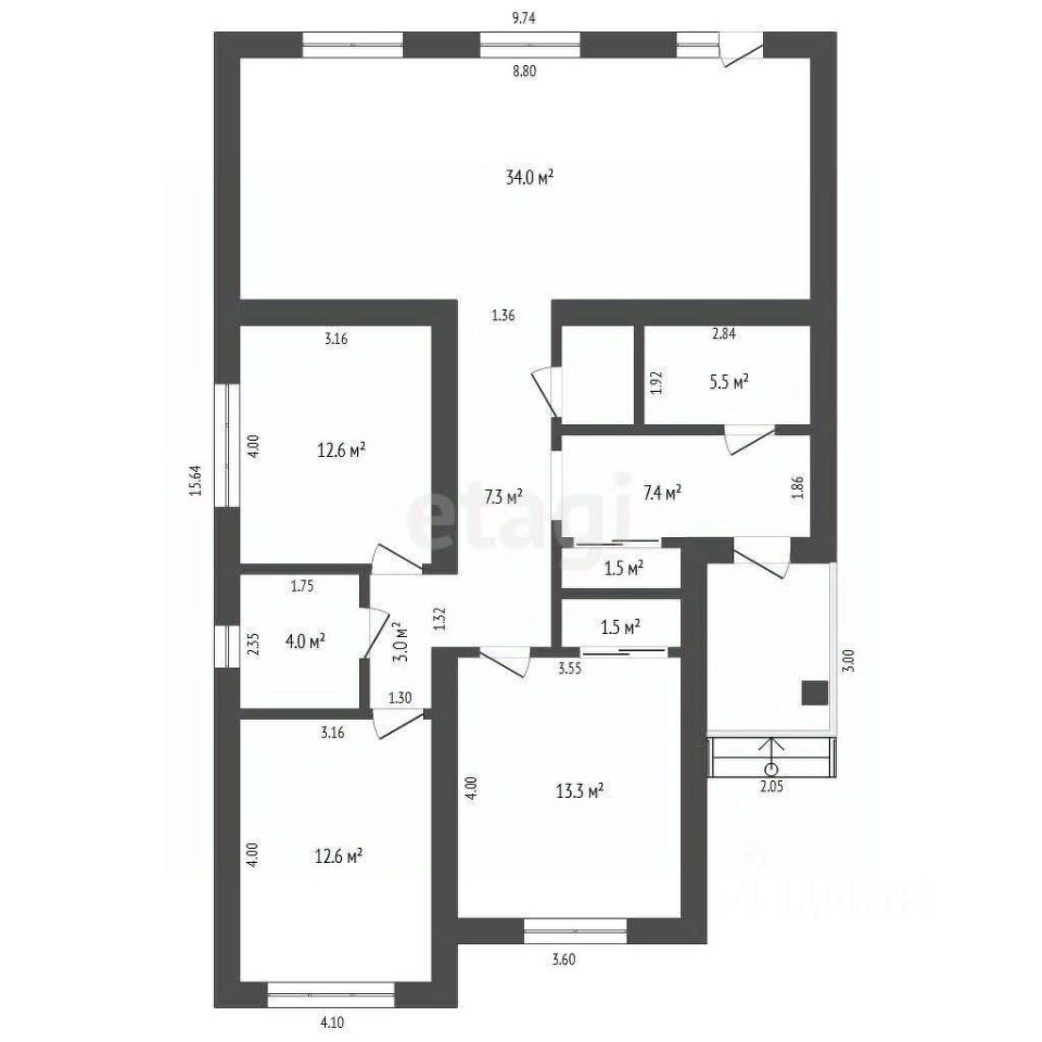 3 комнаты, 2 санузла, кухня гостиная, кладовка.