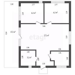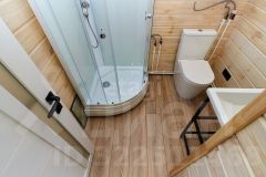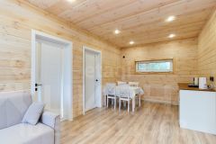 Планировочное решение - 58.9 м2 основная площадь из них Кухня гостиная 18 м2 с выходом на террасу 17.3 м2 а так же две изолированные комнаты по 6.6 м2, сан узел с душевой кабиной и замечательная комната для парения с электрокаменкой!