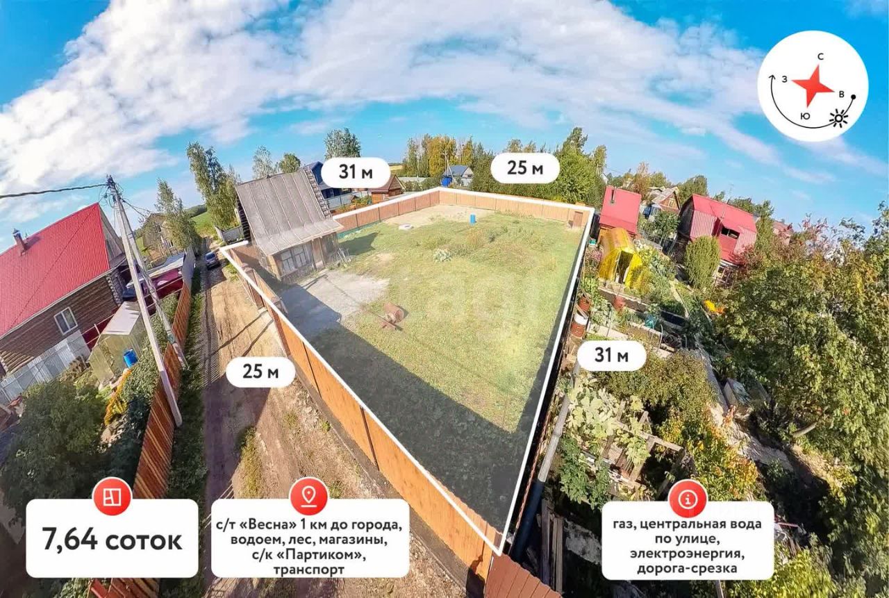 Предлагаем Вашему вниманию участок площадью 7.6 соток в ДНТ "Весна". Место сухое, участок удобной прямоугольной формы, свободен от старых построек и деревьев, по улице проходит газ и централизованный водопровод. Электричество заведено. Ведётся коттеджная застройка, соседи живут круглогодично. Ходит городской транспорт 17 автобус, остановка в 15 мин ходьбы. Дороги отсыпаны срезкой, зимой чистятся регулярно. Категория земли: земли населённых пунктов, разрешенное использование: для садоводства и огородничества (строительство и регистрация домов разрешена, прописка)! Остановка общественного транспорта находится вблизи с садовым обществом, где круглогодично ходит автобус маршрут N 17, 17к, 33. Рядом расположен ледовый дворец Партиком и Воронинские горки. Прекрасное место для строительства собственного дома. ЗВОНИТЕ!!!
