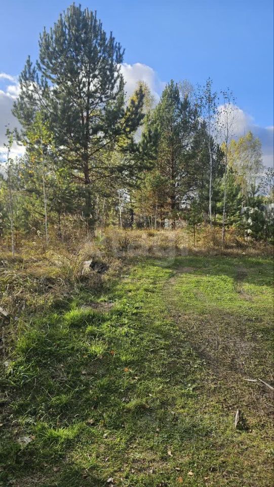 столб около участка, забор с одной стороны, есть сосны и несколько берез