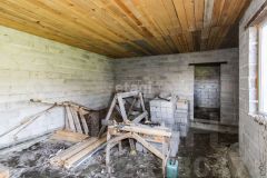 На участке имеется недострой площадью 300 квадратных метров, который включает в себя высокий гараж, баню с предбанником и выход на 2 этаж, где располагается комната отдыха.