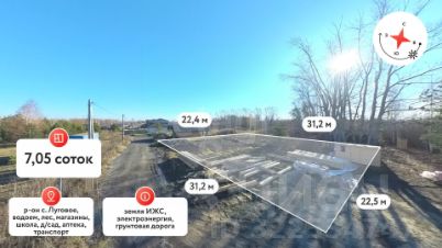 В нескольких минутах от участка находится живописное село Луговое, где вы найдете все необходимое для комфортной жизни: магазины, садовые центры, школу и детский сад, а также аптеки. Здесь есть все для вашей семьи, чтобы чувствовать себя уютно и безопасно.