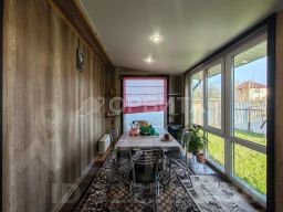 Двухэтажный дом из бруса, утепление минвата, обшит сайдингом, на участке 5 соток. Просторная планировка: на 1-м этаже гостиная, кухня, спальня и веранда; на 2-м — три спальни. Газ, отопление газ и электричество
