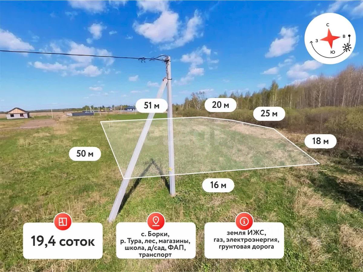 Места очень хорошие - высокие, равные, рядом река , лес. Поселок располагается вдоль федеральной трассы от Тюмени по Тобольскому тракту, вблизи реки Тура. Коттеджный поселок является частью села Борки с имеющимися уже школой, детским садом, поликлиникой и всей необходимой инфраструктурой. Планируется активная коттеджная застройка с развитой инфраструктурой и коммуникациями (подведение газа, электричества, водоснабжение — индивидуальные скважины, канализация — (септик), дороги с твердым покрытием. Ждем Ваших звонков!