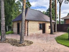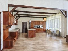 * Гостевой дом-баня с большим мозаичным бассейном 7*5м . Большая гостиная , кухня так же массив производства Италии со встроенной бытовой техникой, с мангальной зоной на дровах с витражным остеклением и большой комнатой отдыха.