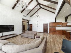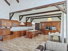 Дом построен на монолитной, армированной плите, стены из керамзитоблоков и облицован декоративным камнем снаружи. В доме четыре просторные спальни/детские (36,22,30,30 кв/м), два санузла, джакузи, большая кухня-гостиная (79 кв/м), прачечная, гардеробная, прихожая. Профессиональная система вентилирования дома с проектом, система кондиционирования, многоступенчатая система очистки воды, две скважины. Канализация - септик - 40 куб. Видео-домофон. В кухне-гостиной классная итальянская мебель из натурального массива - Stossa, бытовая техника премиум-сегмента Neff (плита 90 см на 5 конфорок, встроенный духовой шкаф и микроволновая печь, встроенная кофеваррка, посудомоечная машина и встроенный подогрев посуды).