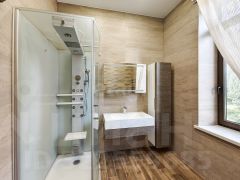 Осветительные приборы пр-ва Италии. Добротные двери - массив. Достойная сантехника и сан.фаянс. На полу паркет.