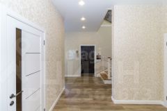 Дом выполнен в 2 этажа из керамзитоблоков, облицован качественным кирпичом и утеплен минеральной ватой. Построен по индивидуальному проекту с использованием высококачественных материалов, находится в чистовой отделке. В доме высокие потолки, перекрытия из бетонных плит, крыша из мягкой черепицы, стены и полы выровнены под маяк. Пластиковые окна в тон облицовки, на второй этаж ведет бетонная лестница. Все сантехнические коммуникации и электроразводка выполнены.