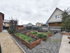 Земельный участок правильной формы площадью 10 соток полностью благоустроен: ухоженный газон, зоны многолетних деревьев и кустарников, включая плодовые насаждения — малина, вишня, слива, яблоня, калина, миндаль и сирень, обеспечивают абсолютную приватность и эстетику окружающей среды.