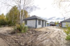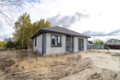 Фасад дома выполнен из кирпича, стены из керамзитоблока с утеплением, а фундамент — монолитная плита, что гарантирует долговечность и надежность.