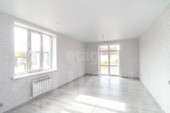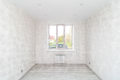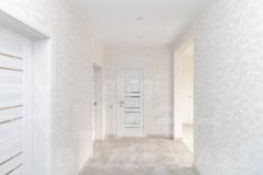 Внутри выполнен современный ремонт с использованием высококачественных материалов. На полу в коридоре уложен керамогранит, а в кухне-гостиной и спальнях — ламинат. Стены оформлены в светлых тонах, создающих атмосферу уюта, а натяжной потолок добавляет элегантности. Санузел отделан керамогранитом, установлены межкомнатные двери.