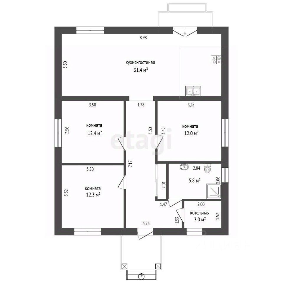 Вашему вниманию представлен современный дом в микрорайоне Казарово. В доме кухня-гостиная 32 кв.м., три изолированные комнаты по 12 кв. м., коридор, совмещенный санузел 6 кв.м и котельная.