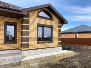 Стены: керамзитоблок, утеплитель толщиной 100 мм, облицован керамическим кирпичом.