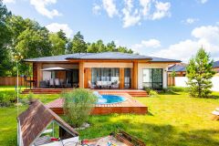 На придомовой территории расположен морозоустойчивый каркасный бассейн, имеющий выход с террасы, а также гараж, что удобно для хранения крупногабаритных вещей и автомобиля. Участок граничит с лесом, что создаёт уникальную атмосферу уединения и спокойствия.