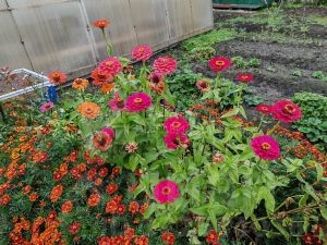 На участке высажены: яблони, вишня, смородина, установлены грядки под зелень.