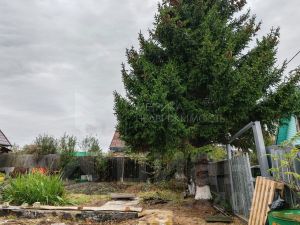 На участке высажены: ель, туя, яблони, вишня, смородина, установлены грядки под зелень.