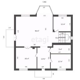 Первый этаж составляет 130 м2, просторная гостиная 60м2 позволит принимать гостей с особым комфортом.