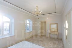 О доме: все окна пластиковые, эксклюзивная входная дверь, крыша покрыта мягкой кровлей. В доме стены покрашены, потолки выполнены в комбинированном стиле - окрашены и натяжные, наполное покрытие - плитка, теплые полы от газового отопления. В течение месяца будет установлена лестница в деревянном исполнении (материал ясень), а так же межкомнатные двери. В 4-х с/у и постирочной ведутся работы: электропроводка проведена, облагорожены плиткой, устанавливается сантехника. Из сантехники будут установлены 2 унитаза инсталляции и 2 напольных, 4 раковины с подвесными тумбами, 1 ванная, 2 душевые кабины, зеркала с подсветкой и антизапотеванием. В постирочной будет установлен напольный шкаф, раковина со столом 1,20 м., зеркало во всю стену с подсветкой и антизапотеванием. Все материалы и работы входят в стоимость дома. В дом заведены газовое отопление и электричество установлены котлы, оборудованы радиаторы, запущено тепло. Установлены фильтры для очистки воды.